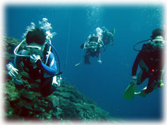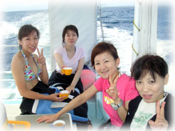 今日も賑やかな面々。みなさんオール女性です。きのうに引き続きの親子ダイバーズ ヨーコさんとアユミさん。そして姉妹ダイバーズのハツミさんとヒロミさん。今日からご参加くださるのは、ナースダイバーズの、ヨシコさんとチサコさん。お二人は様々な事情により昨夜ほとんど一睡もできず超がつく寝不足だそうです。
