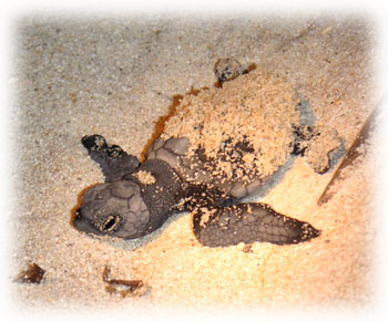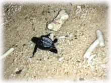 さてさて、、、それにしても昨日は長〜い1日でした。朝起きて、急遽出港を決めファンダイブとダイブマスター講習。帰ってきてからてくてく歩いて豊年祭へ・・。それでもけっこう疲れてたけど、夜にウミガメの孵化の知らせが・・・っ。と言うわけで、ウチノヒトと共に速攻米原へ向かいました。ウミガメの孵化は一昨年初めて見ました。今年も数日前から孵化が近いと言う情報は頂いていたけど、シゴトで行けない・・・とあきらめていたら今日までなかかな出てこなかったようなのでした。ビーチの砂が踏みしめられて硬くて自力で出られないのかも・・・という話も聞きました・・。。