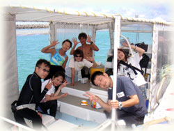 そういえば、きのうで8月に突入していた・・・。夏真っ盛りです。。。 昨夜夜半、すごい勢いのドシャブリがふった(らしい)。ゲストの皆さんは知っていた・・・。ワタシは全く全く知らなかった。このところずっとベットに入って2秒で意識なくなりバタンキュー・・・。気づくと快晴の朝でした・・・。本日のゲストさんは、きのうに引き続き5日めに突入のカスガさん←なんとなく動きがスタッフチックになってきた??(笑)そして、3日目のクニコさん。そして2日目のマイコさん、そしてガクさん。←お二人は最終日となりました。先月30日に来てくれたサラちゃんも参加です。そして・・・石垣島の友達の所に居候のハルカちゃん。1年前にダイバーになってナント今日が初ファンダイブですっっ。。そして今日は、研修で海シゴト体験のイントラのナカジマくんも参加しています。このメンバーで、目指すは黒島です。