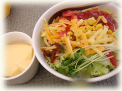 今日はタコライスにシマシタ。 冷たい卵豆腐と一緒に。