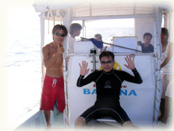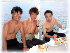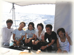 今日は、最終日となってしまった4日目クニコさん。そして6日目に突入のカスガさん。きのうまで宮古で潜られていたイノウエさん。きのうまで北部で潜られていたオシナリさんとヒライさん。そして友達のキヨチンがゲストさんです。今日はスタッフ研修にナカシマ君、ワタシタチで出港です。。