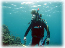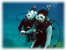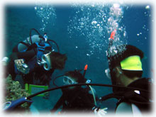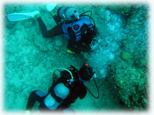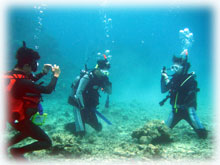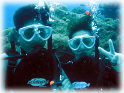 水もきれいで気持ちよく、ワタシはエリさんと深場のニチリンダテハゼを見に行きました。 マサノリさんもかなりダイバーチックな体験さんで、余裕で普通のダイバーのように泳いで楽しんで下さいました。ご夫婦でダイビングされたらさぞ楽しそう・・と言うことで、多分次回はマサノリさんもダイバーさんになられていることでしょう。 ワタシタチがエントリーしたあと、