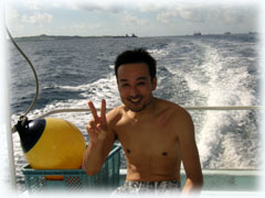 今日のゲストさんは、お店の上階に住んでおられるイケダさん。今日も体調不良によるキャンセルが発生し(オダイジにね〜ぇ)・・・イケダさんラッキー♪貸し切りのVIPダイブと相成りました〜。。イケダさんは、地元のお菓子職人さん。オキナワのお盆によく使われる盆菓子の量産で旧盆の頃までは休みナシで超忙しかったそうですが、今はやっと落ち着いたそうで・・・今日は5月以来、久しぶりのダイビングだそうでっす。