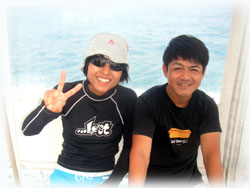 帰港して、お店でログ付けです。。昨日は「アカククリとツバメウオの違い」・・でしたが、今日は「ノコギリハギとシマキンチャクフグ」の違いを説明させて頂きました。そしてサトシさん。ニセアカホシカクレエビをみて「このエビってゆでると赤くなるのかな・・・??」という疑問・・。ワタシはその疑問、一度も考えたことアリマセンでした・・・でも、確かにドウなんだろう・・勿論かわいそうなんでやりません・・。そして、去年12月にマンタに振られまくってどうしてもマンタがみたいムラカワご夫妻。明日は北部のショップで潜られるとのこと。ぜひ、念願のマンタに逢ってきて欲しいモノですっっ。。タナカのお母さんは、本日「主婦の友」に載せるご自身の写真を水中で撮影しました(ちゃんと撮れてるのか?!)。移住した人の取材を依頼されてるらしく、秋に掲載されるそうですよーん。。