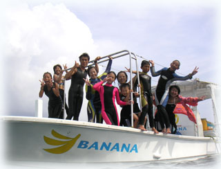 BANANAでしめましょうっ。今日もマルチな海遊び大会。走り回る元気な子供達はとにかく目が離せません。今日もスタッフは、ユカ、キヨチン、そしてワタシタチの4名体制で万全を整えてます。