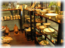 「さんぴん工房」。石垣島の土を使った焼き物のお店です。お店にはタローさんがいました。