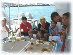 今日は、到着ゲストを待つ間、昨日から引き続きのササキコウさん・スミレさん。最終日のカズジさんの3名で出港です。リクエストのマンジュウイシモチを見てきました。内湾性のサカナなので、どうしても夏場行くと濁っています。。。