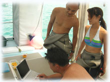 ・・・なんと、数え切れないくらい石垣に来られているヒロさん・・。いつもお約束のごとくいつも海は時化ててなんとマンタ見れたのは、最初来られた時一度だけ・・・。と言うことで、今日はマンタを動画で撮って頂きましょうっっ。ササキさん達は、マンタを上(水面)から見たいっ・・。ワタシは、出港を見送り、今日はダイブマスターコースの学科再試験担当です。