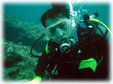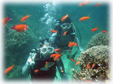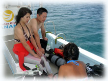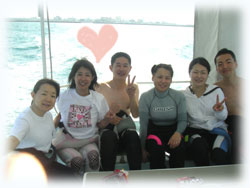 スミコさん。一昨年の6月以来のオヒサシブリです。なんと、スミコさんはこの時のフォトコンで、入選されたのでした。それからしばらく経って一枚のはがき・・。「結婚しましたっ!」。突然のコトでビックリしていましたが、今回は素敵なダンナサマとお越し下さいました〜。知り合って半年でご結婚されたとか・・。と言うわけで、旦那さんのシゲルさんは今日は体験ダイブお初です。スミコさんもあれ以来ダイビングから遠ざかってたとか・・。久しぶりに楽しんで下さいね。