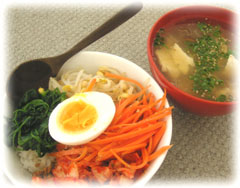 今日はビピンバ丼とゆし豆腐汁。