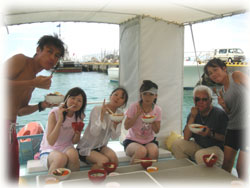 一旦港へ戻り、ランチタイム。