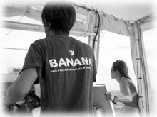 今日のゲストさんは、昨日に引き続きワタジさん(←昨夜も呑んでないそうです・・(笑))そして同じく引き続きのクスダタカシサンタカコさんご夫妻。そして、今朝ご到着されたのは、トモイチさん&ヨシコさん。(昨夜1名様の突然キャンセル・・で)5名での出港となりました。まずはランチを食べてからの出港です。昨日が寒かったから、今日も涼しいだろう・・の予想で、今日は久しぶりにちほ特製のトロトロになるまで煮込んだソーキソバを作りましたが・・・見事にお天気はハズレ。暑い中熱いモノで汗だく・・・。毎日毎日、お天気とにらめっこしてランチメニューを考えているんだけど、コレカラの季節の変わり目は難しい・・・・(そして、言い訳じゃないけど、今、島はスーパーの野菜など種類が極端に不足気味、そして高値!