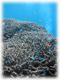 大間違いやった・・。浅瀬のユビエダハマサンゴの群生は