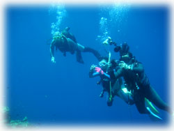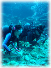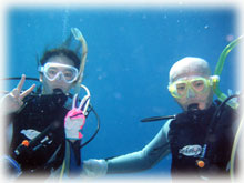 1本で帰港。そしてまた合流です。到着されたのは、ユカさんのお友達のオオイワさん。そして昨日に引き続きスーパー体験ダイバーアヤさんです。なんとアヤさん、今日で体験ダイブ18本を数えます・・・でも、頑なにダイバー拒否。。 2本目は、珊瑚が自慢だったポイントへ・・・残念ながら・・やはり一部破壊されてました・・。