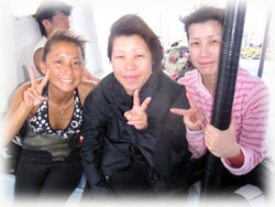 今日も乗合で出港。今日もレディスばななスタッフ3人で朝から準備。今日はシーフレンズさんにお世話になりました。。まずは朝一、朝到着のユカさんを待って、昨日に引き続きのヨネちゃんとのお2人とまず出港。ユカさんは、去年の9月以来のお越しです。今回1泊の強行スケジュールで来て下さいました〜。。