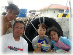 そして、今日到着のミナコさん、ミホさんが合流。ミナコさんはなんと1泊2日。でも今月石垣2回目、沖縄3回目・・前回は、今月9日に来て下さってます。アイザワさんは仕事の出張でニシバヤシさんより1日遅れでご到着。今年6月以来です。名古屋→長野(実家)→大阪(出張)→那覇→石垣と忙しい数日だったそうです。わざわざ実家で取れた美味しーい梨を抱えて来て下さいました。