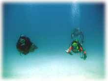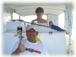 今日の朝一ダイブは、小食の大きなダイバーゼンさん。そしてやせの大食いニシバヤシさん。そしてラストになりましたオカモトご夫妻。到着のゲストサンが来られる間、まずは竹富の南へ・・。