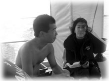 今日のゲストサンは・・・・きのうに引き続き、今年4回目の石垣島のヨーコさん。そして同じく引き続き骨折して手術した腕に毛が生えてきた(笑)・・・というニシナカさん。そしてタカコさん。そして、今年5月に来て下さったクミちゃん。そして7月に来て下さったケンジさんっ!←会社では英語を使っているため、日本語が少しおぼつかなくなってきたみたいです・・(笑)そして、今日はケンジさんがもう一人。サトウケンジさんが、ばなな初登場っ。←なんと、立派なデジカメ一式と、ビデオカメラ一式の二つを持参されています。でも、器材はまだ未購入・・・←撮影への情熱が伺えます・・・。。