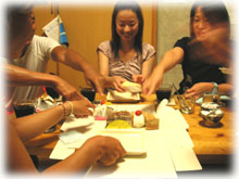 みんなもっと笑顔。そして今日は島内観光をされていたユミコさんのお母さん、なんと今日がお誕生日っっ!! おめでとうございまーすっ。みんなでお祝いしつつ、ケーキを美味しく頂きました〜。ショッキングブルーな1日でゴメンナサイねぇぇー。そしてごちそうさまさまでした。それから、みんな日本語怪しい・・・・・ログ付け。。今日は、今から宴会。ワタシタチは仕事済ませて合流・・だけど、出来るのであろうか・・。