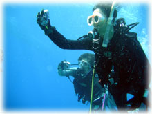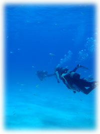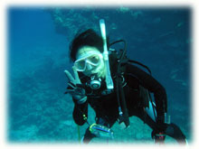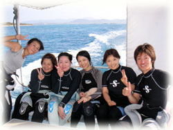・・・と言うことで、今日もブルーブルーを求めて、離島に決定っ!!今日は、きのうに引き続きのユミさん。そして、前回7月にお越し下さったナースダイバーのお二人チカさんとトシエさんがお越し下さいました〜。前回はマンタに行ったけど・・・・でした。そして、前回5月にいらして下さったトモアキさん・ハルカさんご夫妻がいらして下さいました〜。ハルカさんは、あの石垣の後、ダンナさまを置いてアメリカ、その後すぐバリに遊びに行かれたそう・・・。いいなー・・。そして、今日はダイブマスター候補生のミワさんが参加していまーす。。今日はキャンセルが入り、このメンバーで出港です。。