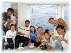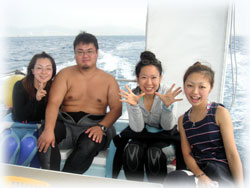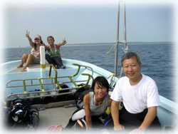 一旦帰港し、今朝ご到着のゲストさん達と合流、再出港です。到着されたのは、去年12月に来て下さったフジタさん。そして、いつも一泊のダイビングの旅のレナちゃん。レナちゃんは、5月以来