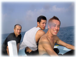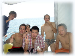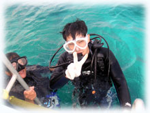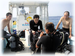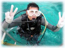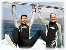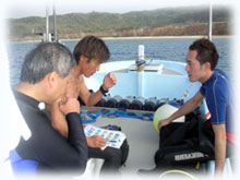 今日はトシミツさんはファンダイブ。そしてお兄さんのクニアキさん、お友達のヤスユキさんとヒトムさんが体験ダイブに挑戦です。。そしてきのうに引き続きのフジタさんもファンダイブで参加です。