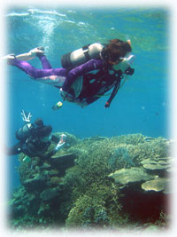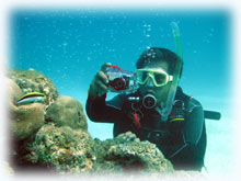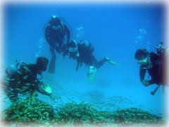 砂地でマッタリの後は・・・ドロップオフへ〜・・・。うってかわって地形ダイブです。