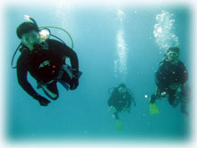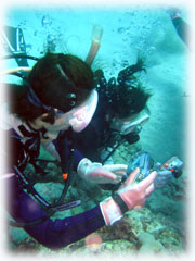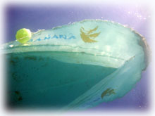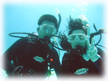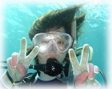そんなこんなの1日でした。今日は・・・またまた夕日がきれいっ。 ログ付け前に、フリーダイビングで有名な方々とスタッフが、ばななに登場。 今年4月にフリーダイブ講座でご一緒させて頂いた松元恵さん。そして高樹沙耶さん。今回クラブメッド主催のウォーターメディテーションという企画が昨日今日開催され、来島されています。(実は・・ずっとダイブマスター候補生としてばななで 頑張っているミワさんに、ワタシの代わりにこのツアーのスタッフとして参加してもらいました。こういった有意義で大きな仕事に加わる機会はなかなか無いと思うので、ミワサンにとっても いい経験になったことでしょうね〜。)お店で、今回の企画がどれだけ充実し手応えの大きな感動的なモノであったかを聞かせて頂きました。 その後、恵さんや沙耶さん、今回のスタッフのえりちゃんやさゆりさん、そして今日のゲストさんとお店の前で、まったりユンタクしながら夕日が沈むのを眺めました。今日の夕日もとってもきれいでした〜。
