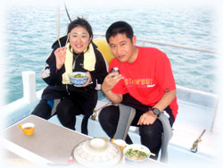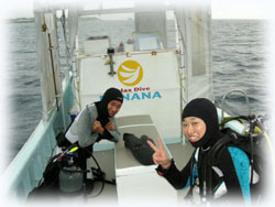 昨日の夜から雷が・・・。大気が不安定で今朝は雨になってしまいました。。しかし今日も南寄りの風。。 夏の様な陽気は1日限定でしたが、まだ北風ではないのが救いデス。そんな今日は、昨日に引き続きのキシさん。そして、エミさん登場っ。今年6月にお越し下さって以来、今年3度目の石垣島でーす。おかえりなさーいっ。