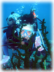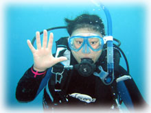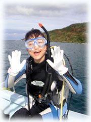 ブランクで不安だったカズコさんは、一本潜って緊張緩和したカンジ・・。マスククリアも・・ビビリつつ、でもちゃんとできましたっ。マスククリアは普段のファンダイブでも無意識にやるくらい必須ですので、しっかりマスク内の水が出て行くようにコツをつかんでおいて下さいねん。とにかくカズコさん「潜って良かったっ・・」らしいです。よかった・・・。でも、泳ぎも安定していて、ビギナーさんにしては上出来でした。さて、お次は・・・アカククリの群を見に行きましょう。名蔵湾へ・・・。