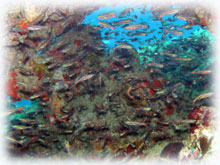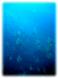 群はアカククリのみならず、小さな魚を追いかけるナンヨウカイワリの群やカスミアジ、スゴイ数のグルクンなどが中層を泳ぎ回ってました。