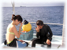 ログ付けは、最終日のエミちん。今年のダイビングは一旦終了のエミちゃん。先日50本超えたし、もう余裕ダイバーさん。後は・・写真の腕を磨くのみ(笑)。また来年、一緒に潜れるのを楽しみにしていますねぇぇん。