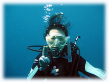 大崎は、いつもと違うコースからスタート。ワタシはハセガワさんとファンダイブ。女性陣はウチノヒトとナビの予定が・・・1本目ちょっとアクシデントの為ファンダイブになりました。