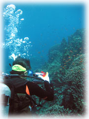 ゲストさんは、きのうに引き続き700本ダイバーのハセガワさん。そして、アドバンス講習を受けられるのは、クボタさん。6月以来のお越しです。もうおひとりは、9月以来のタテノさん。この夏は一泊2日ばかりでしたが、今回は2泊での滞在です。たまたまお二人とも、ちょうど一週間前、東京ばなな会にもお越し下さったので、そんな話題で盛り上がりました。