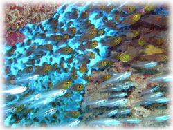 他に、イソギンチャクエビ、ウルマカサゴ、カクレクマノミ、ウミウシ各種、テンクロスジギンポ、グルクンの群、ヨスジフエダイ、等々・・・。