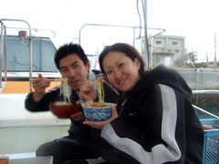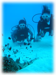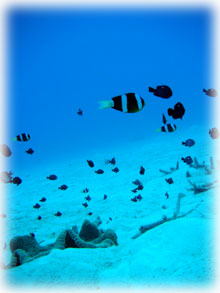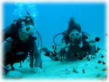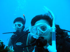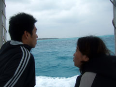 美味しい別腹を頂き、カラダを温めたところで午後からは竹富方面へ・・。リカさんの極度の緊張はすっかり解けて、水の中の気持ちよさを想い出したみたい・・・。今度は白い砂地をまったりと・・ブルーな世界を満喫してもらいましょう〜。もう、ヨシノブさんの耳も時間をかければちゃんとぬけたし、リカさんもかなりの余裕で上手におよいでました〜。とっても楽しそうです。。