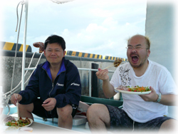 今日は、去年の6月以来のアムさんがお越し下さいました〜。 またまた上等の手作りオプションの上等デジカメを ひっさげて・・・・。。 ・・・と言うことで、 今日は ヒロさんとアムさん、 ← メンズで出港〜。