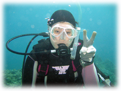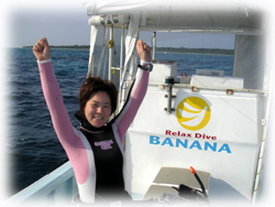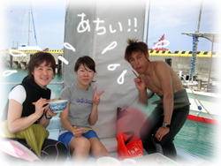 チエさんは、今日が最終日。春から休みが取れないので、夏には一泊でも来たいっ、今年中に100本記念を・・と意欲満々です。デジカメも3日目でかなりいい写真になってきました。まずはピントがしっかり合ってきたっ!!ぜひ、今度はマイデジカメで・・・そぅそぅ、100本記念をマンタ見ながら・・・なんていかが〜。またお会いできるのを楽しみにしていますね。