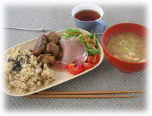 ・・・・と言うことで、ランチにしましょう(汗)♪ 今日は玄米&肉巻きエッグと生ハムサラダプレートです。