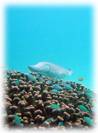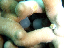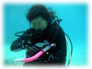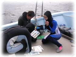 休憩中、そんな講習の様子をうかがってたファンチームのアキコさんチエさん。今日は名蔵周辺がかなり水が綺麗で気持ちの良いダイビングでした。午後の浜島では、スゴイサンゴに癒され、ユビエダハマサンゴにはコブシメの卵が所狭しとぎっしりっ。・・・とそこへコブシメの夫婦が産卵に・・・。ハッチアウトが待ち遠しいコブシメベビーです。