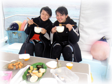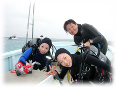 昨日学科テストに合格したアンジュちゃんとモモカちゃんのお二人です。そして、きのうに引き続きのファンダイブ、アキコさんとチエさんは最終日となりました〜。