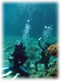 一方、講習チームも元気よく2本目っ。 ニモ(カクレクマノミ)も堪能し、 とても楽しげなお二人でした〜。。