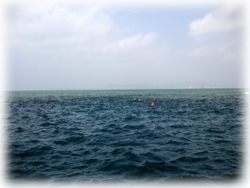 帰りしな、赤い漂流物が目にとまり、 船を止めて拾ってみたら・・・・・ 「奥特曼兵団」の文字に ウルトラマンのイラストの風船だった・・。 これって、台湾から飛んできて着水したものらしい・・。 そぅ、この島は、沖縄本島より台湾に近いしね。