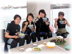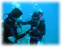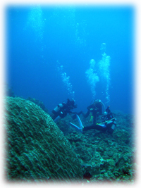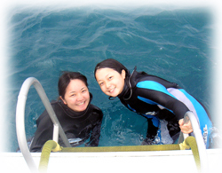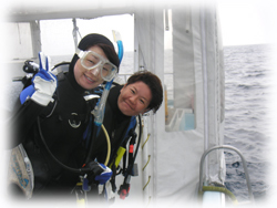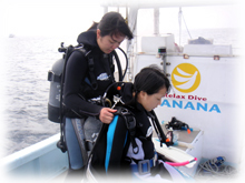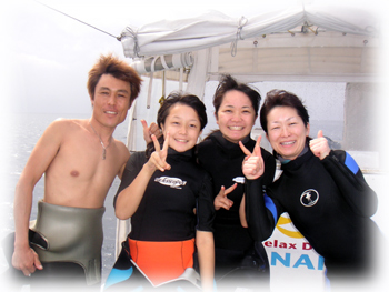 おとといから始まってる講習。 アンジュちゃんモモカちゃんのおふたりは、 講習中日です。きのうの山場は超えて ・・楽勝の様子。 そして、今日からのゲストさん。 お久しぶり〜のリツコさん。 ハードなお仕事の息抜きに来られました〜。 前回は、一昨年の8月、ナント台風にぶち当たり たった1日しか潜れませんでした・・。 その苦い経験があって今回は春に・・。 ちょっと時化気味ですが、 楽しみましょう。 。