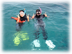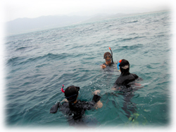 食べたら二人は自発的にシュノーケリング。 素潜りの練習をする元気な二人。 そう、素潜りもかなり上手っ。