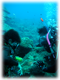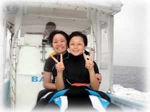 お店に帰って、アンジュちゃんモモカちゃんは、 器材の洗い方を習ってから初めてのログ付けです。 コレで講習は全部終了〜っ。おつかれさまでした〜。 しっかりもののアンジュちゃん(19歳)と おっとり甘えん坊のモモカちゃん(14歳)。 アンジュちゃんとおなじ歳に、 ワタシもダイビングを始めました。(遠い昔) その頃は、ワタシもこぉんなに若かったんだな・・(しみじみ) 本日、 お父さんお母さんと一緒に ファンダイビング出来るダイバーになりました〜!! おめでとうございまーすっ。地元にお住まいなので、海は身近・・ 今年は、4人でファミリーダイビング! 楽しみにおまちしていますね〜っ。
