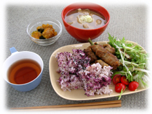 今日はポーク巻きタマゴと十穀米ゴハン、