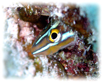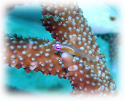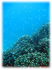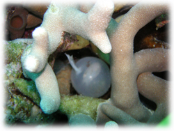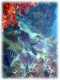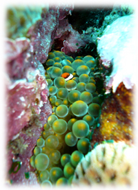 一方、紫のはロクセンスズメダイの卵。 親は一生懸命、卵を守っているけれど、 悲しいことに、多くが他の魚の餌に なってしまいます・・・・弱肉強食。