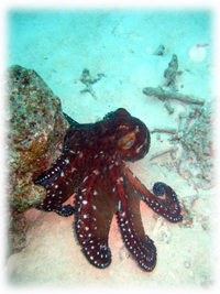 ・・と 近寄ってみると・・ タコだー。タコが動くと魚が着いていく。