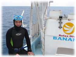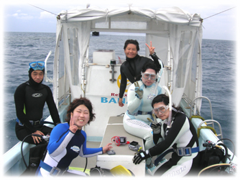 夕方のログ付けでは恒例の記念撮影〜。 アッというの3日間、トシエさんチカさん。 秋にはアドバンス講習を受けに来てくれる計画中〜。 楽しい講習になりそうだ・・・・(笑) 楽しみにおまちしていますよん。 そして初ばななのアユミさん。 今度は暑い時期、マンタをぜひ見に行きましょうね。 帰って働いてまたお金を貯めて来てくれるとのことです。 おまちしていますよーーぉお。 タフなハセガワさんのみ、明日からもまだまだ潜られまぁ〜すっ! 明日はいよいよ晴れる??
